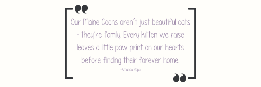 At Stars Above Maine Coons, we’re passionate about raising exceptional Maine Coons—known for their stunning beauty, gentle nature, and loyal companionship. Our cats are more than just pets; they’re family. Each kitten is raised underfoot in our loving home, ensuring they grow up well-socialized, confident, and ready to bring joy to yours.