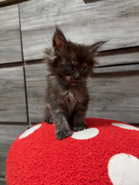 These sweet Maine Coon kittens are currently looking for their forever homes! Raised with love, socialized with children and other pets, and full of personality, each kitten is healthy, happy, and ready to join a family that will cherish them.